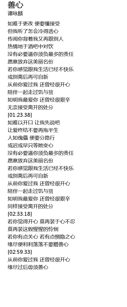 | [02:46.19] | 缘尽便利利落落不要赠善心 |