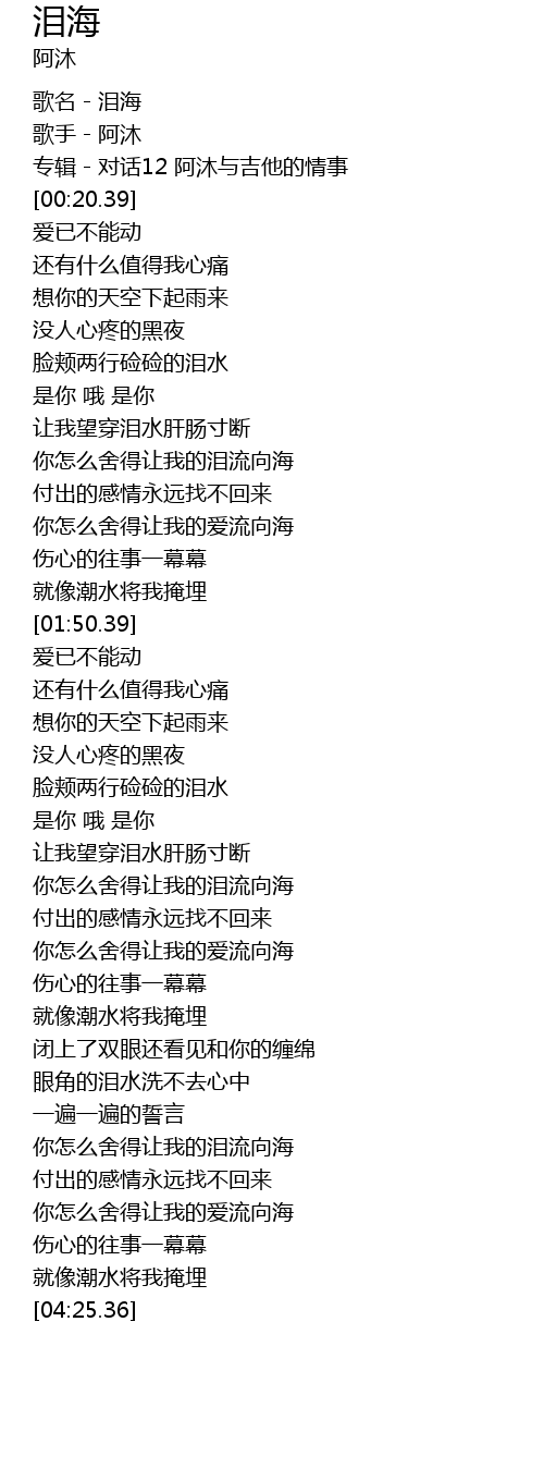 | [04:05.30] | 你怎么舍得让我的爱流向海 |