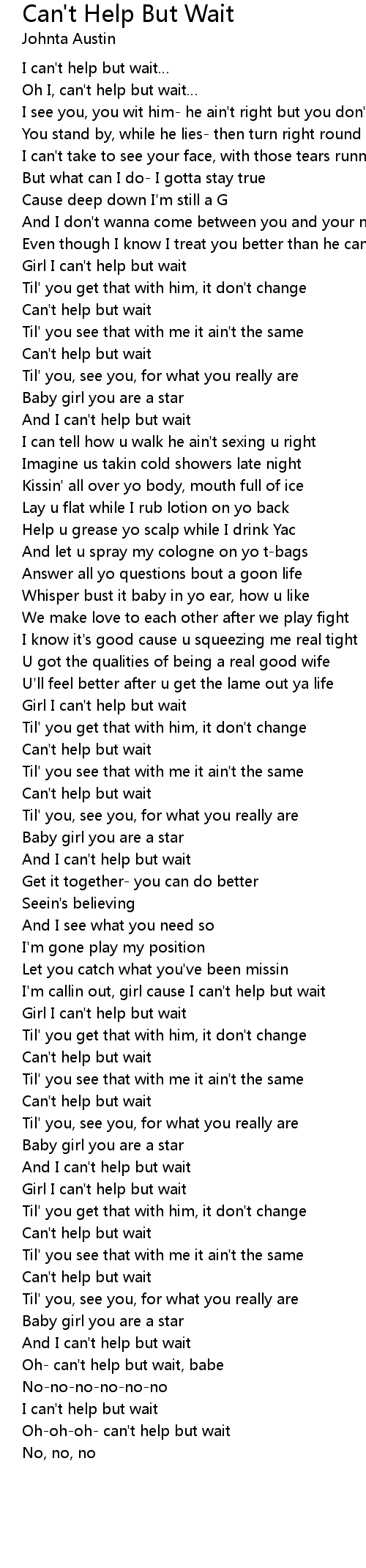 | Oh I, can' t help but wait | |