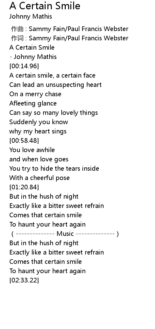 | [01:33.86] | Comes that certain smile |
