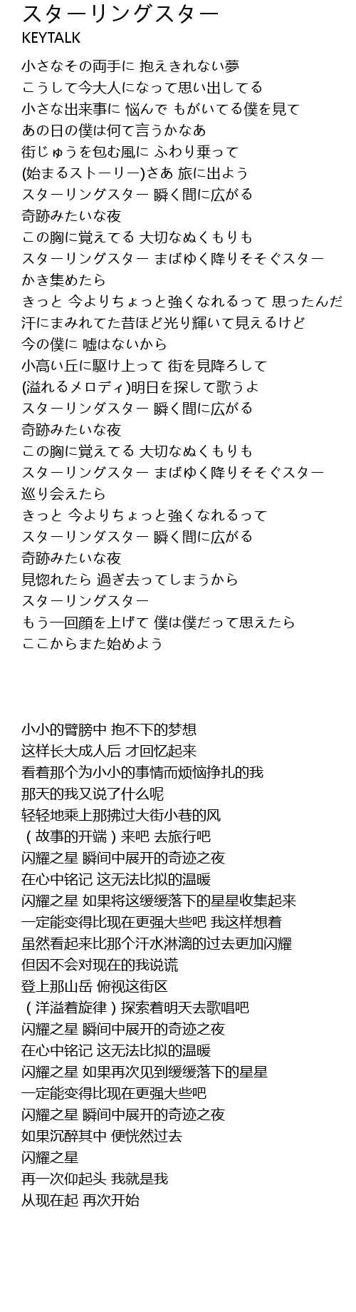 | [02:31.35] | 闪耀之星 如果再次见到缓缓落下的星星 |