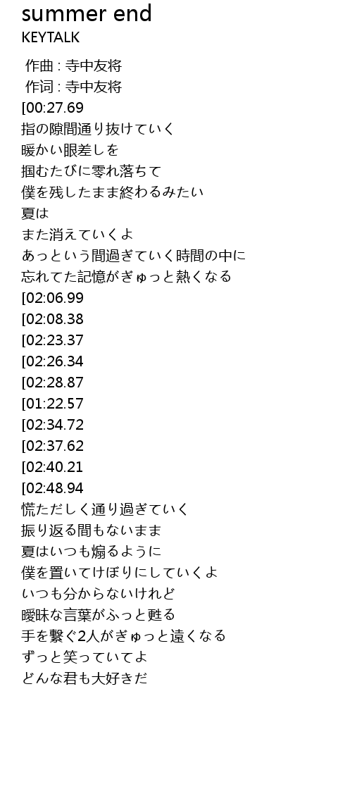 | [01:05.84][02:26.34] | 夏はまだ終わらない |