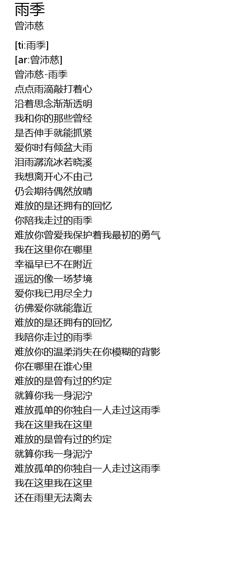 | [00:00.729] | 曾沛慈-雨季 |