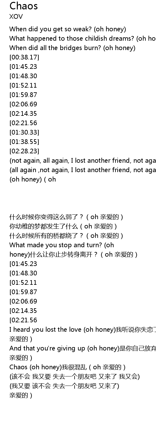 | [02:28.23] | Chaos (oh honey)我很混乱(oh 亲爱的) |