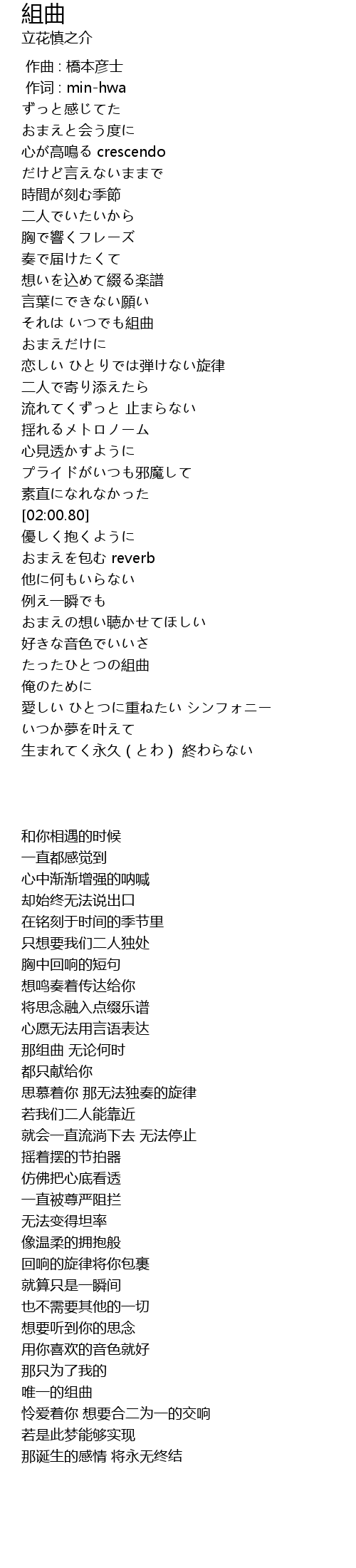 | [00:01.00] | zuò cí : minhwa |