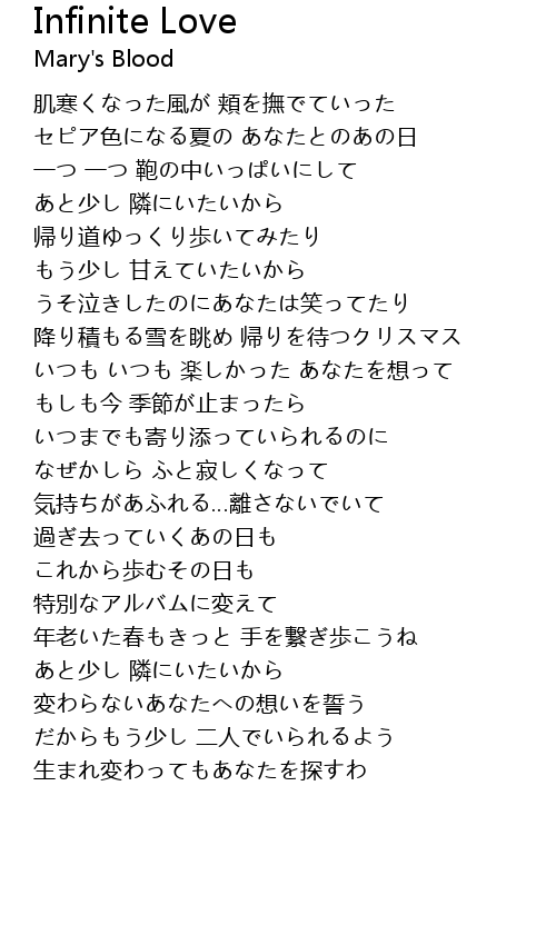 | [04:08.750] | 年老いた春もきっと 手を繋ぎ歩こうね |