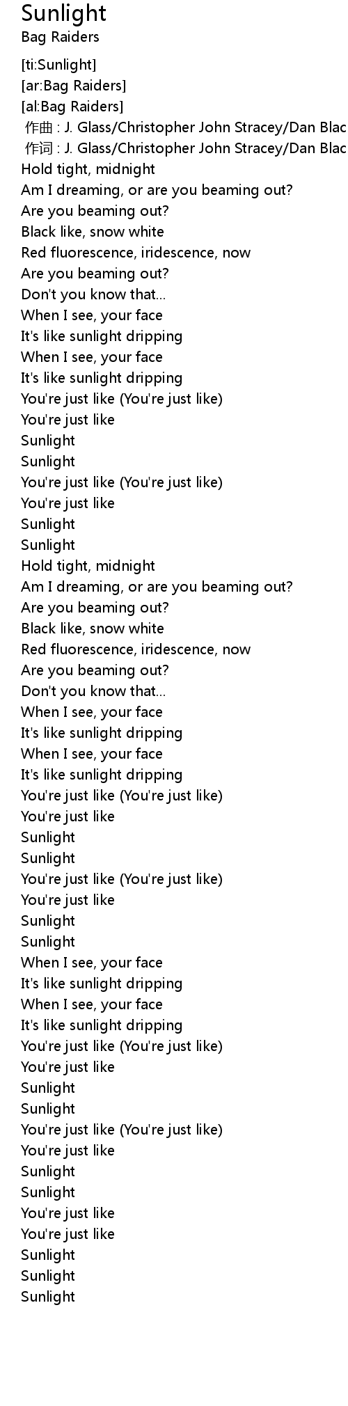 | [00:01.00] | 作词 : J. Glass/Christopher John Stracey/Dan Black |