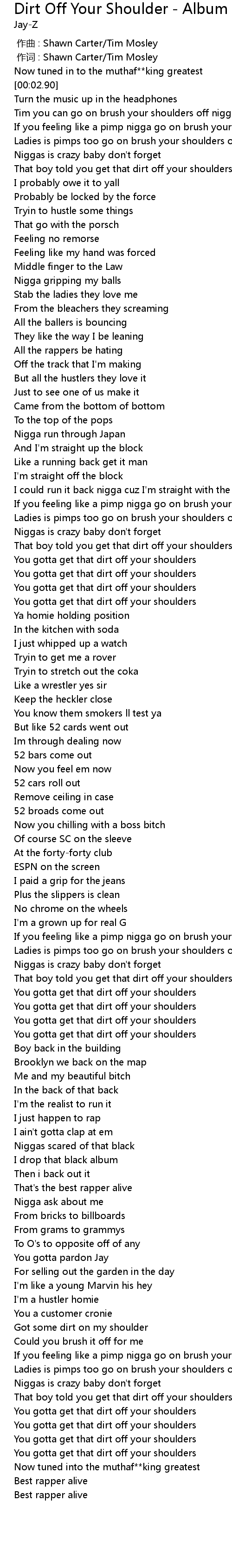 | [03:06.13] | That boy told you get that dirt off your shoulders |