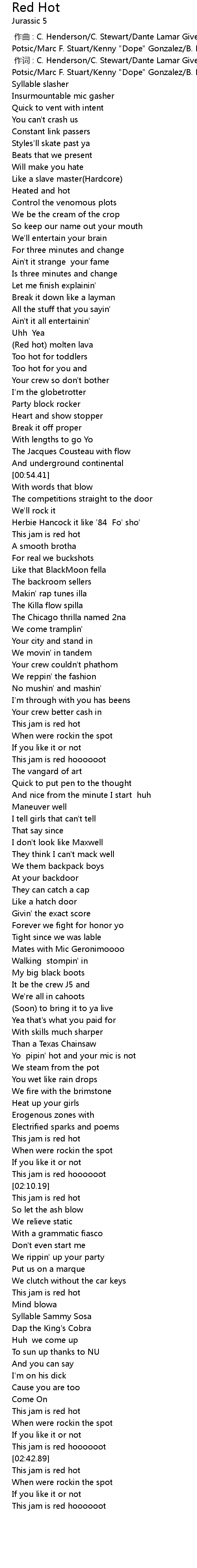 | [00:01.00] | 作词 : C. Henderson/C. Stewart/Dante Lamar Givens/Mark Ali Potsic/Marc F. Stuart/Kenny "Dope" Gonzalez/B. Mann |