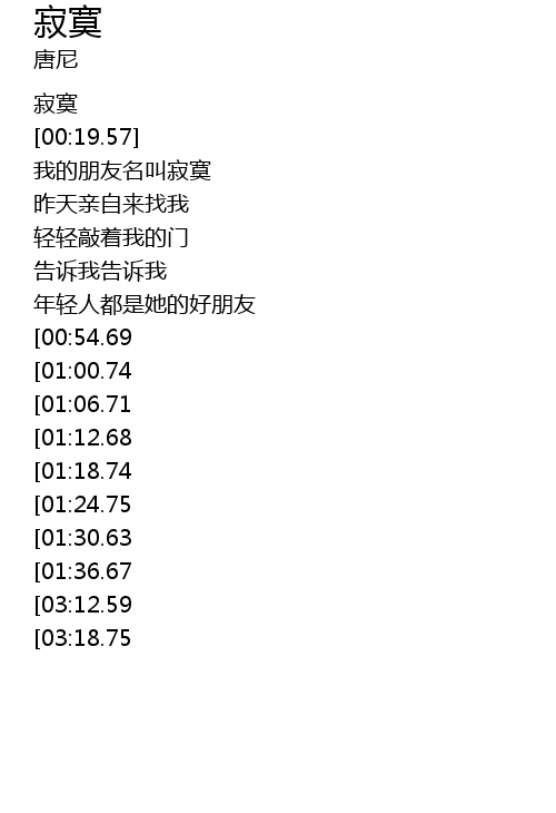 | [02:36.60][01:18.74] | 有位朋友名叫寂寞 |