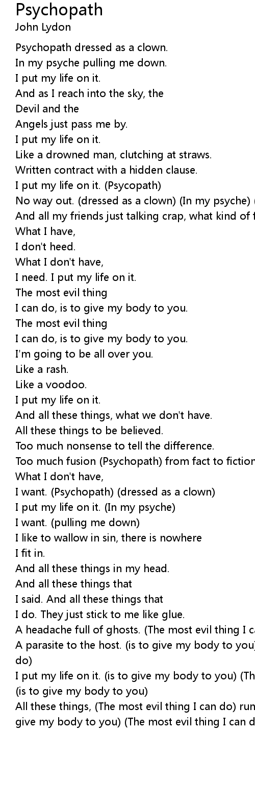 Psychopath 歌词