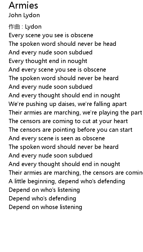 | Their armies are marching, the censors are coming | |