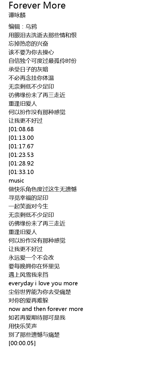 | [02:48.92][01:28.92] | now and then forever more |