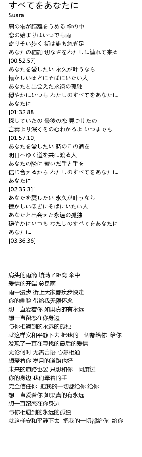 | [03:20.64] | 穏やかにいつも わたしのすべてをあなたに あなたに |