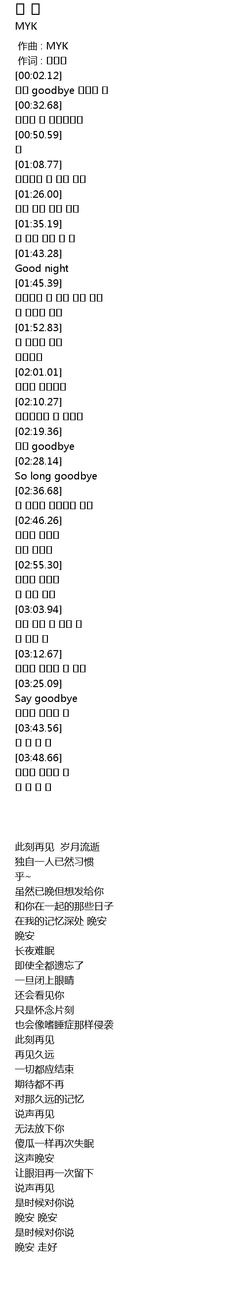 | [02:31.70] | So long goodbye |