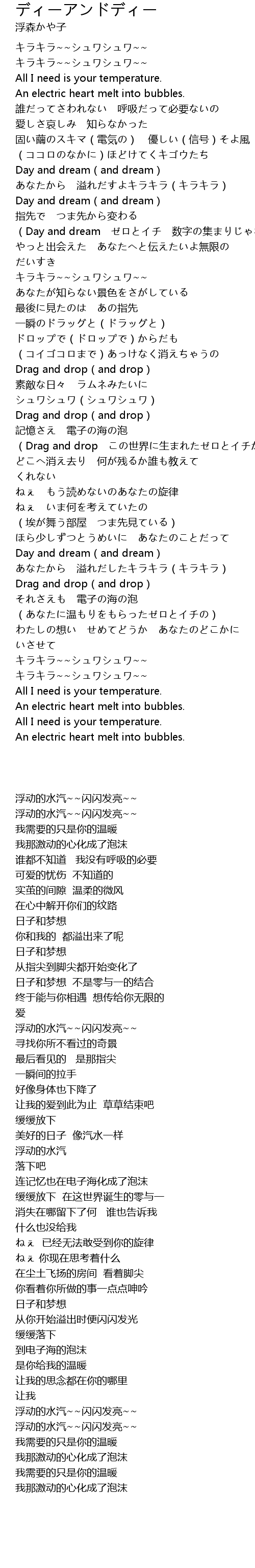 | [01:33.08] | (Day and dream ゼロとイチ 数字の集まりじゃない) |