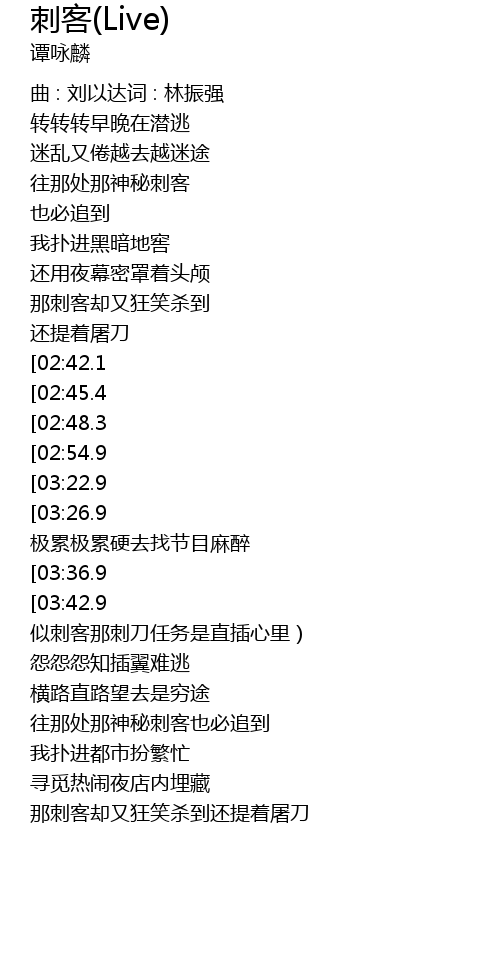 | [02:35.2] | 那刺客却又狂笑杀到还提着屠刀 |