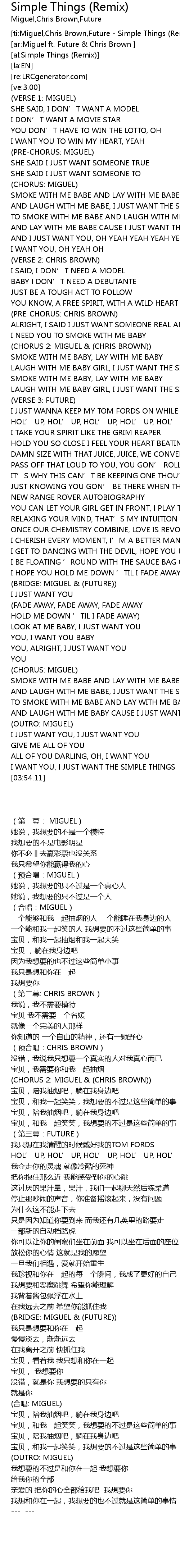 | [ti:Miguel,Chris Brown,Future - Simple Things (Remix)] | |