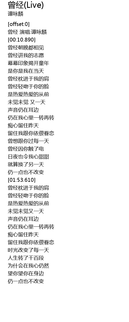 | [00:00.760] | 曾经 演唱:谭咏麟 |