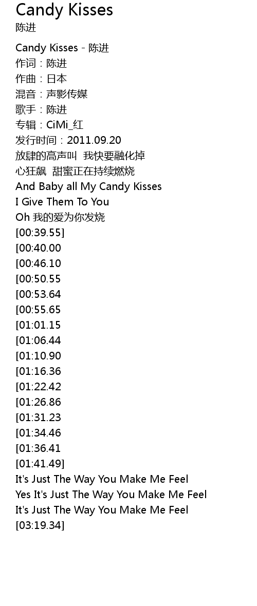 | [02:12.03][00:50.55] | And Baby All My Candy Kisses |