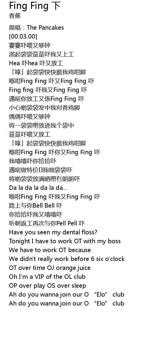 | [00:56.40] | 喺咁Fing Fing 吓你又Fing Fing 吓 |