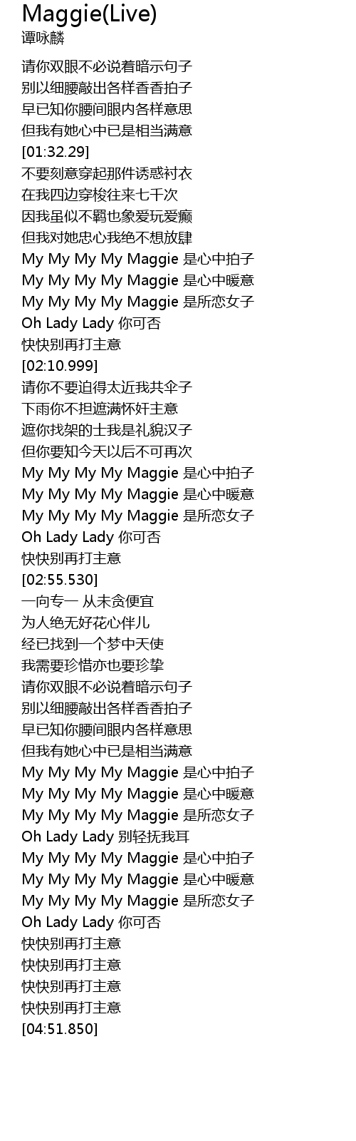 | [04:30.170] | My My My My Maggie shì suǒ liàn nǚ zǐ |