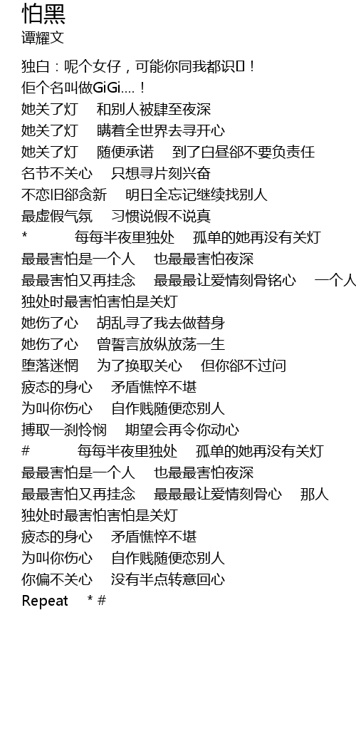 歌曲 怕黑
