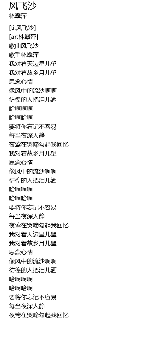 | [00:34.704] | xiang feng zhong de liu sha a a |