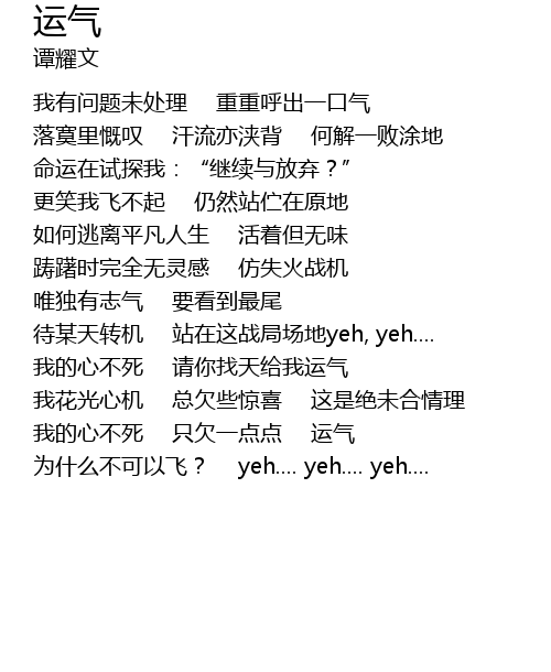 | 我的心不死 请你找天给我运气 | |