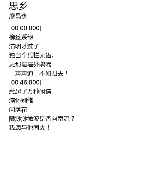 | [01:12.800] | 随渺渺微波是否向南流? |