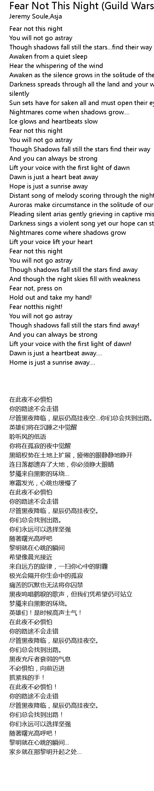 Fear not this night |