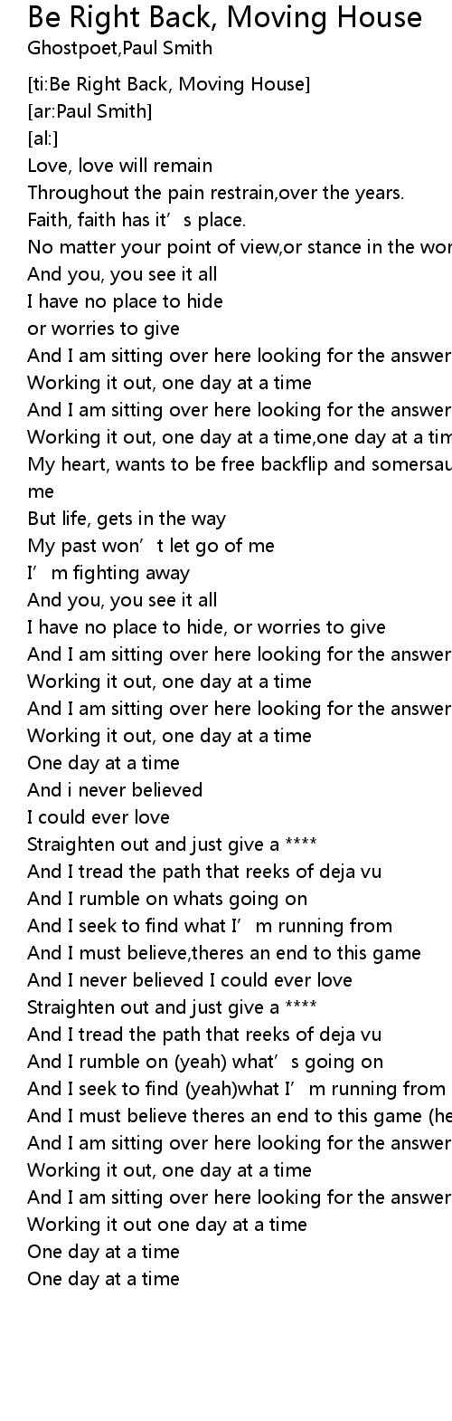 | [ti:Be Right Back, Moving House] | |