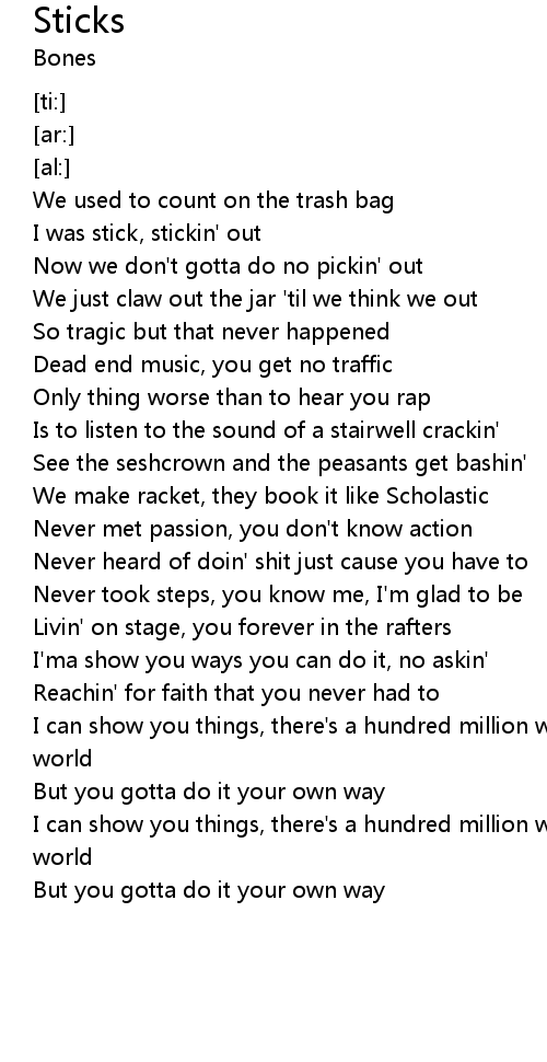 | [00:22.81] | I was stick, stickin' out |