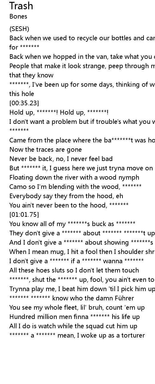 | [00:35.65] | Hold up, *******! Hold up, *******! |