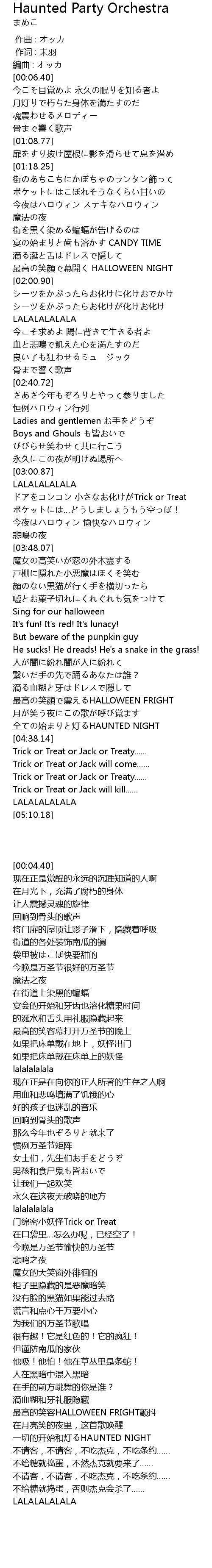 | [04:04.17] | 为我们的万圣节歌唱 |