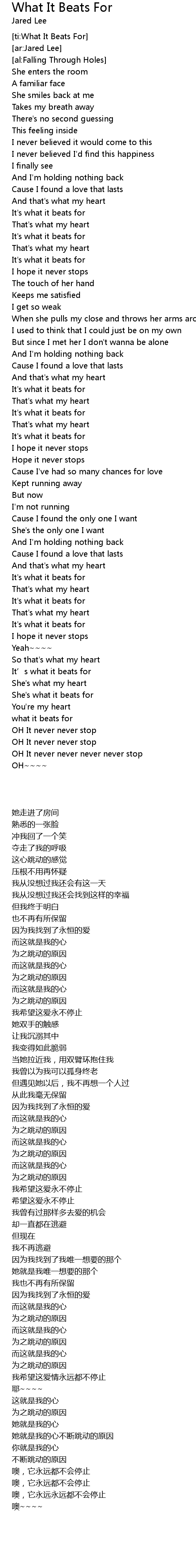 | [02:30.71] | It's what it beats for |
