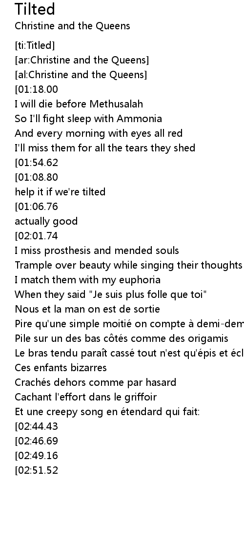 | [01:50.13] | When they said " Je suis plus folle que toi" |