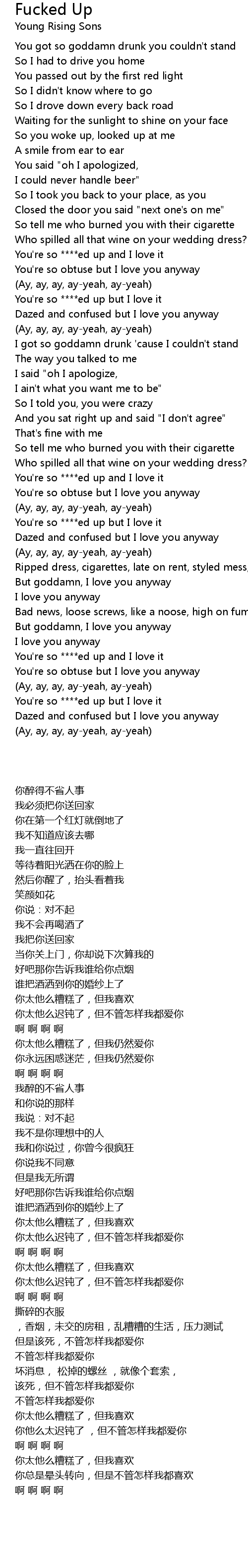 You're so ****ed up but I love it |