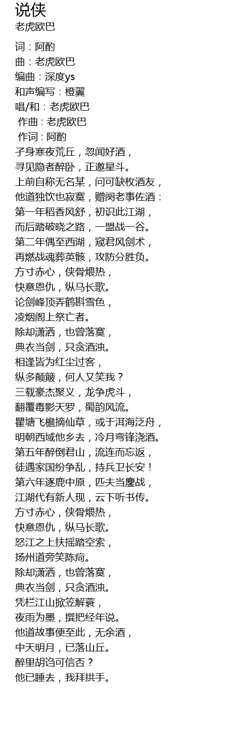 | [00:00.00] | zuò qǔ : lǎo hǔ ōu bā |