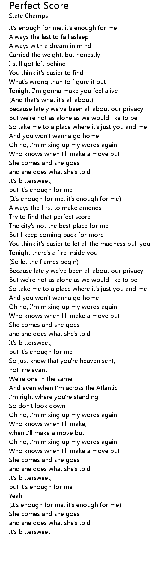 Perfect Score 歌词