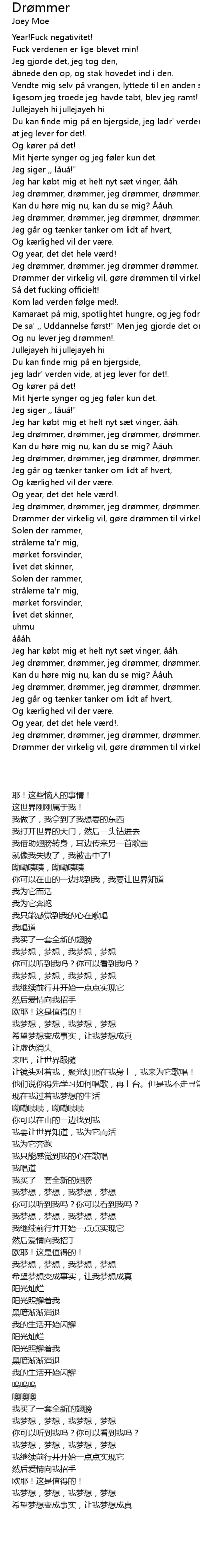 | [3:26:00] | Drømmer der virkelig vil, gøre drømmen til virkelighed! |