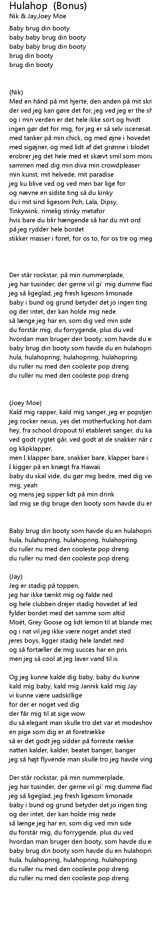 | Baby brug din booty som havde du en hulahopring, hulahopring, | |