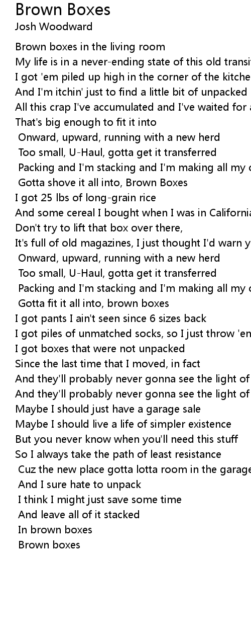 Gotta shove it all into, Brown Boxes |