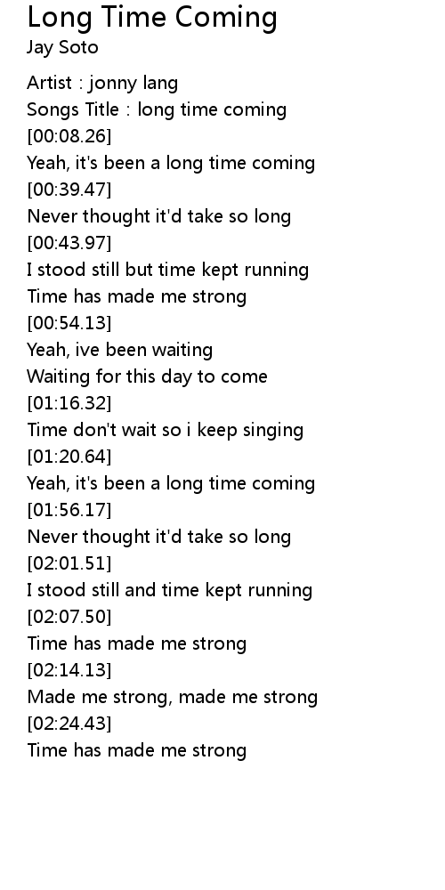 | [01:36.95] | Yeah, it' s been a long time coming |