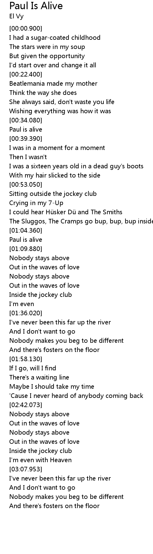 | [01:08.180] | Paul is alive |