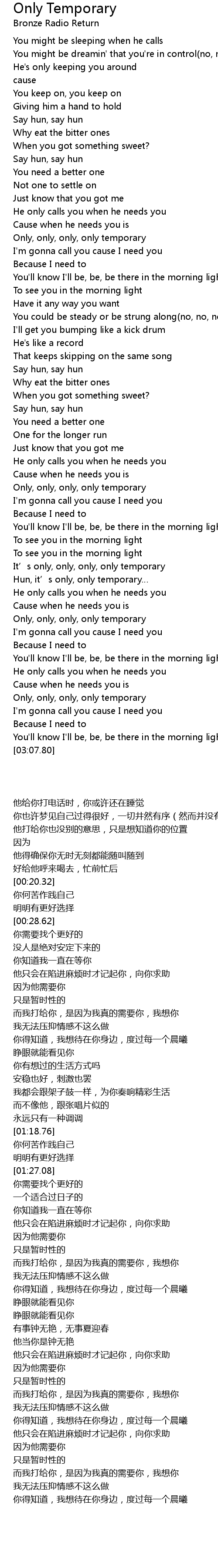 | 歌曲 | Only Temporary |