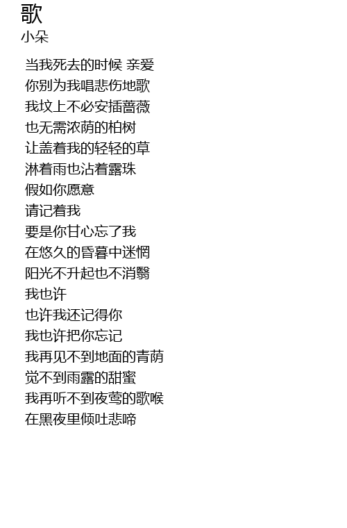 | [00:32.00] | 我坟上不必安插蔷薇 |