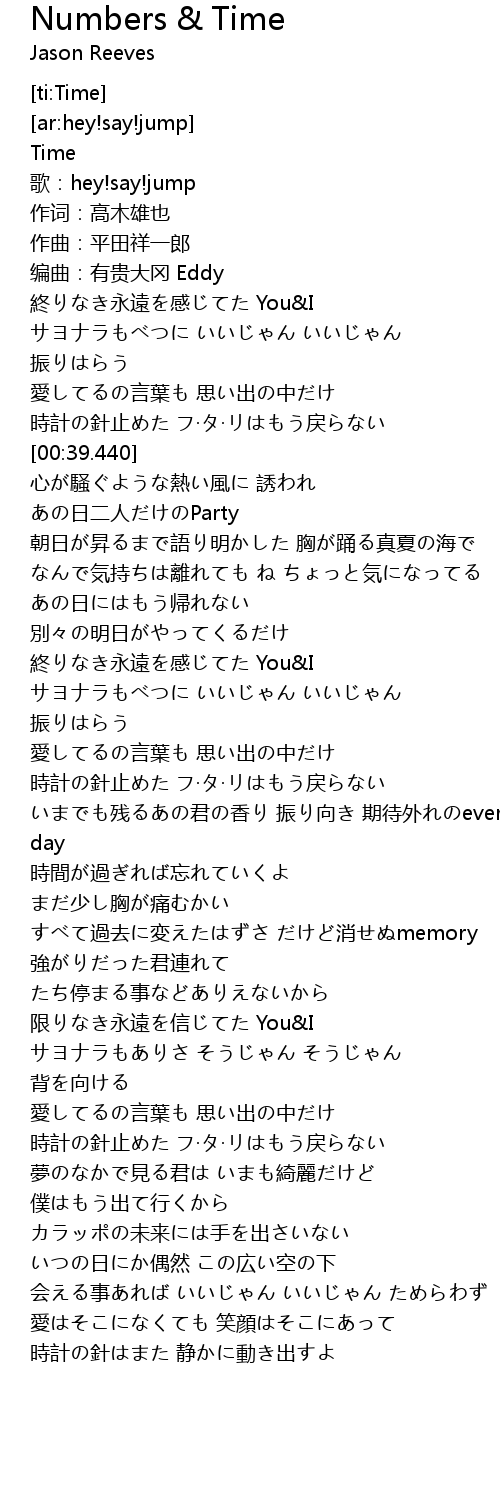 | [00:01.840] | 歌:hey!say!jump |