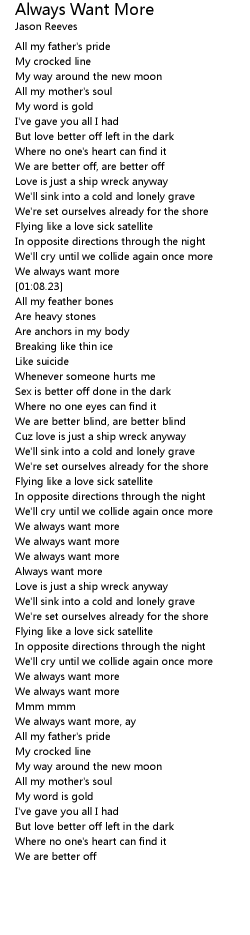 We always want more, ay |