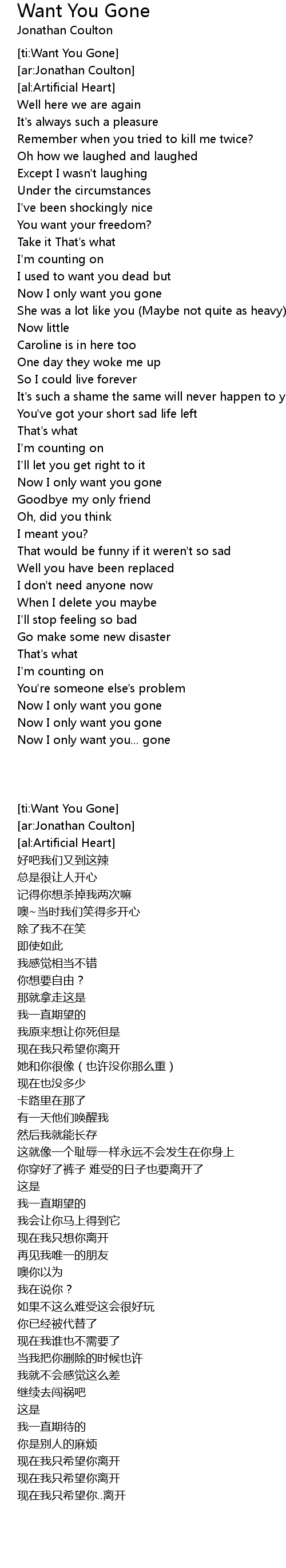 [ti:Want You Gone] |